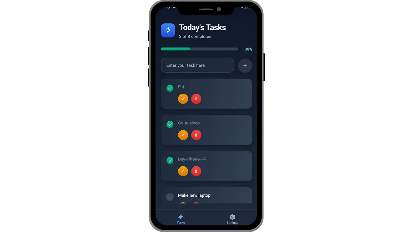 ⚡ Listraq is a modern, full-stack, real-time to-do mobile application that helps users efficiently manage daily tasks with instant cross-device synchronization. Users can create, edit, complete, and delete tasks while tracking live progress and viewing detailed stats. Built with a clean, responsive UI, dark mode support, and a real-time backend, Listraq delivers a seamless productivity experience across Android, iOS, and the web.