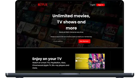 🎬 A responsive Netflix homepage clone built with HTML and CSS, faithfully replicating the platform’s core layout and visual elements. Features hero section with call-to-action, content showcases, FAQ accordion, footer navigation, and fully responsive design for all devices.