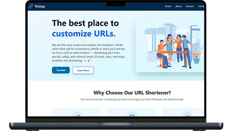 🔗Trimsy is a responsive URL shortening service built with React and Next.js ⚡. It supports custom aliases, one-click copy, and visual feedback via toasts. Fully deployed on the cloud with MongoDB Atlas, it demonstrates modern UI, client-side validation, and seamless API integration.